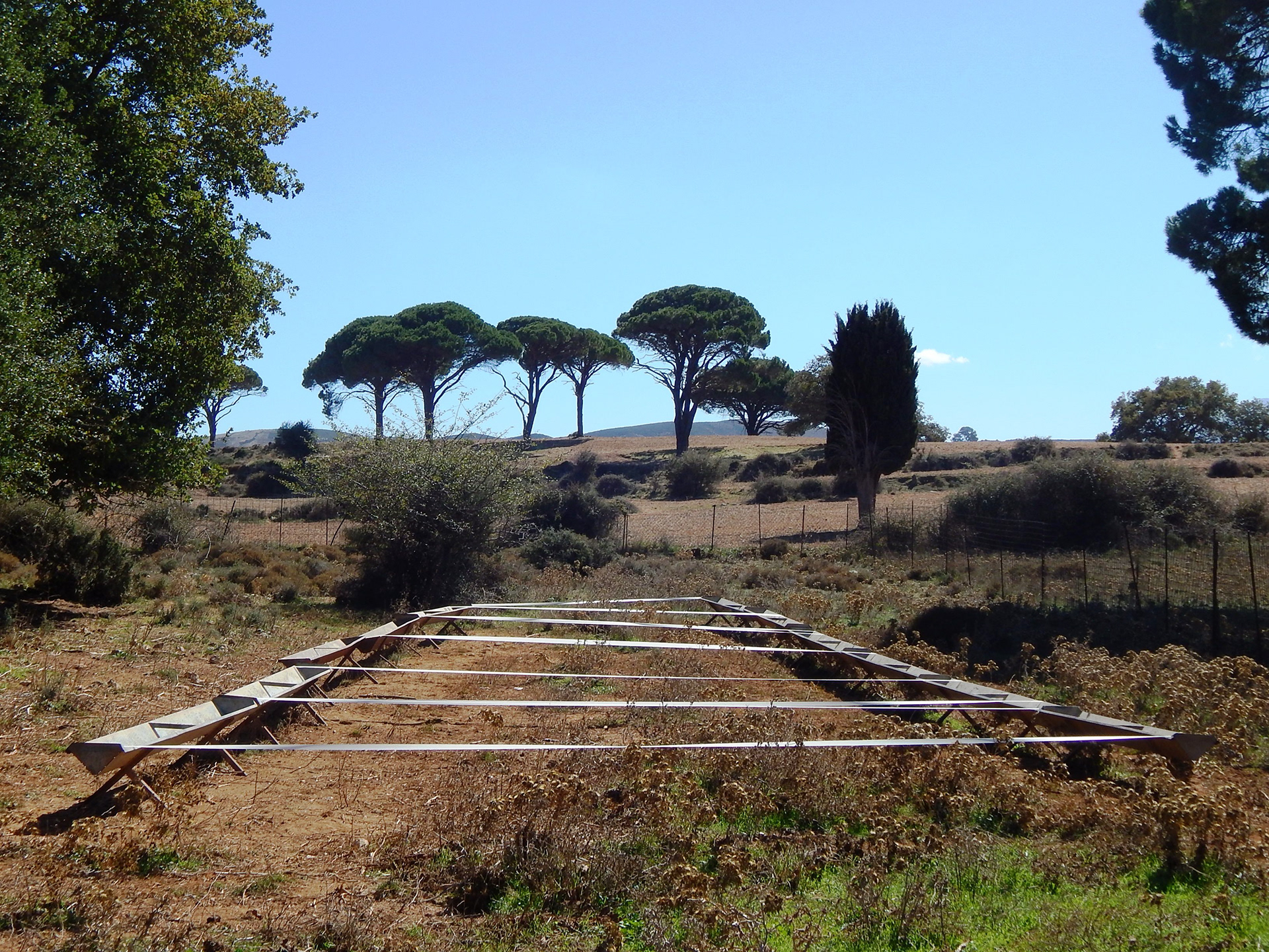 'Constellations / Settlements III’ Outdoor Installation, 2016. Masking tape on found objects, variable dimensions. Arkadi Monastery, Rethymnon, Greece. 'ArtAmari' Residency, 1 - 25 October 2016.